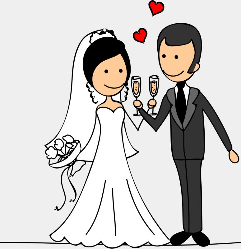 Cartoon Wedding Groom Bride Champagne Glasses 1